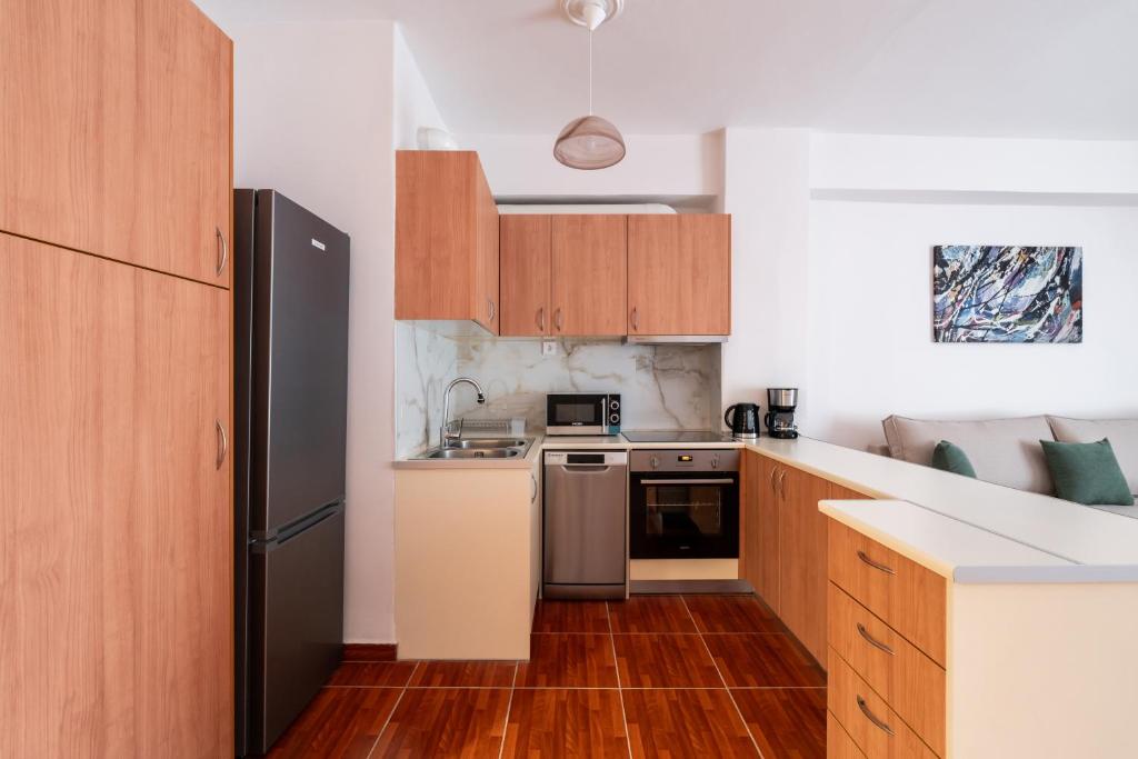 Rovertou Galli 3-5 by Athens Concept Residences includes 2 bedrooms, 1 bathroom with free toiletries, a living room, and a kitchen with a refrigerator. The bathroom includes a shower and a hairdryer.